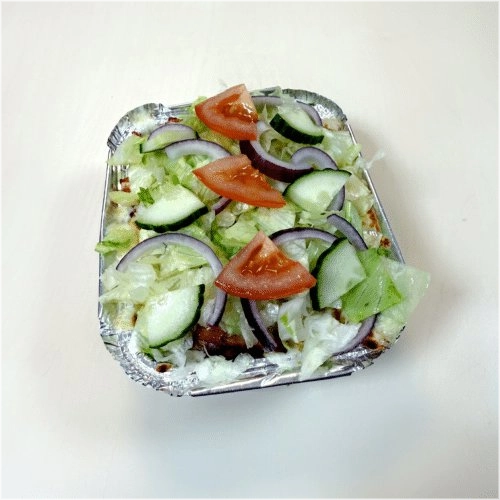 Friet, kipdöner, saus naar keuze, kaas, sla, rode ui, tomaat, komkommer, halal vlees en kaas0