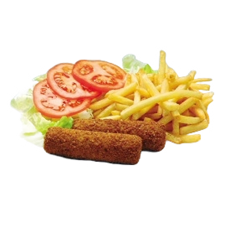Friet, 2 kroketten, zacht broodje, mayonaise of curry0